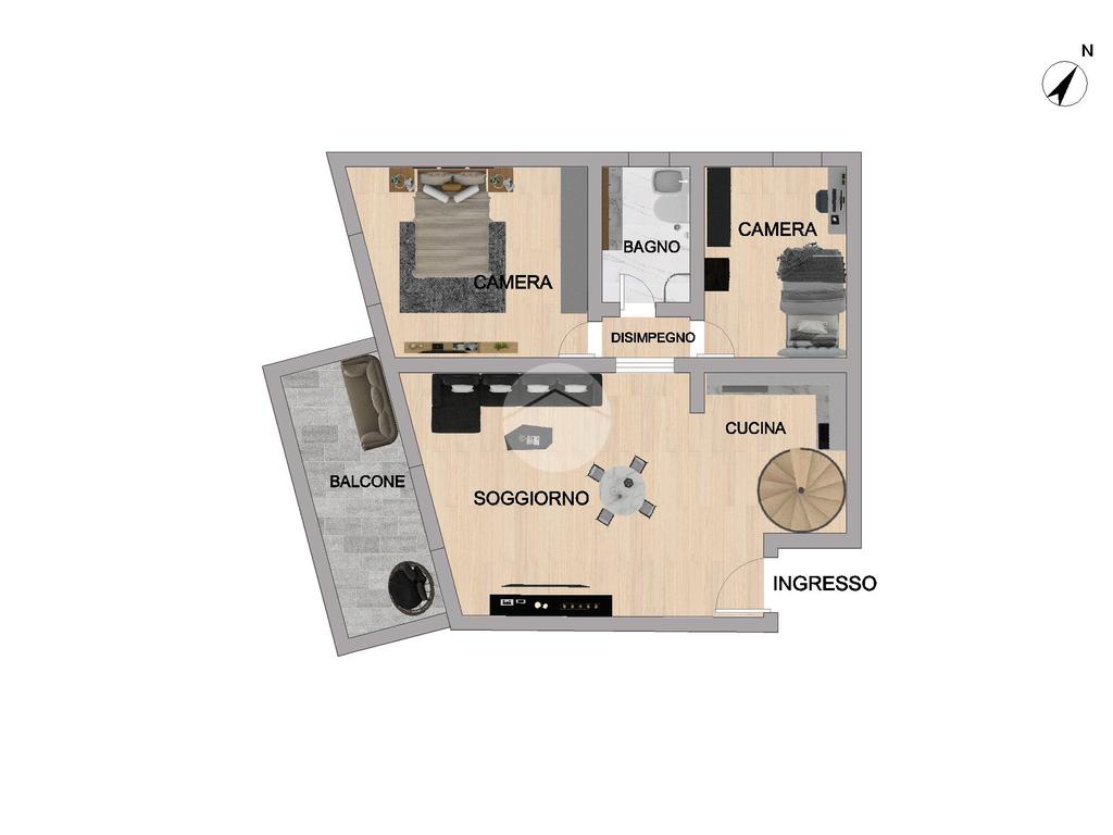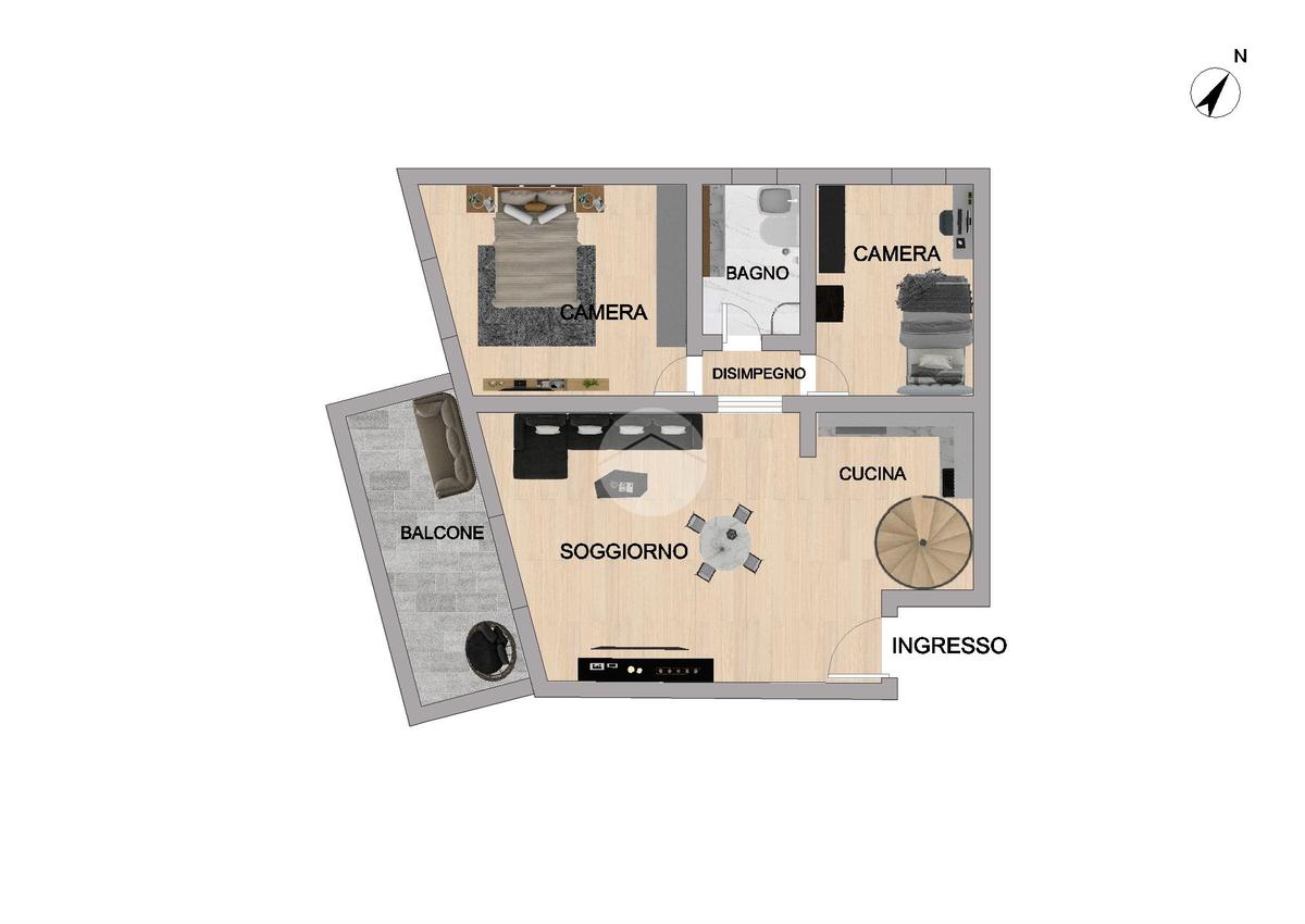 L'immobile è internamente composto da: soggiorno con cucina a vista, camera matrimoniale, cameretta, bagno finestrato e balcone.