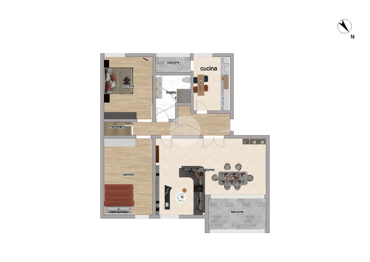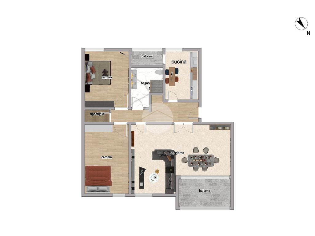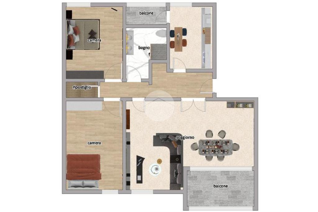 Internamente composto da: salone, cucina abitabile, due camere matrimoniali, bagno, ripostiglio e due balconi verandati.