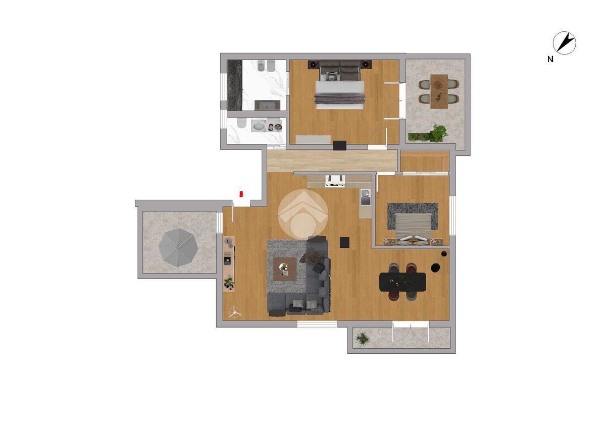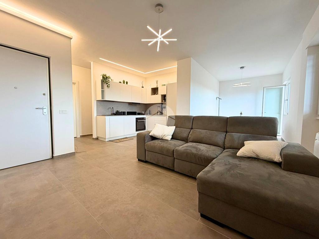 L’appartamento si sviluppa con una distribuzione funzionale e luminosa con ampio soggiorno con cucina a vista e sala da pranzo, disimpegno, due camere da letto, doppi servizi entrambi finestrati di cui il padronale en suite e tre balconi.