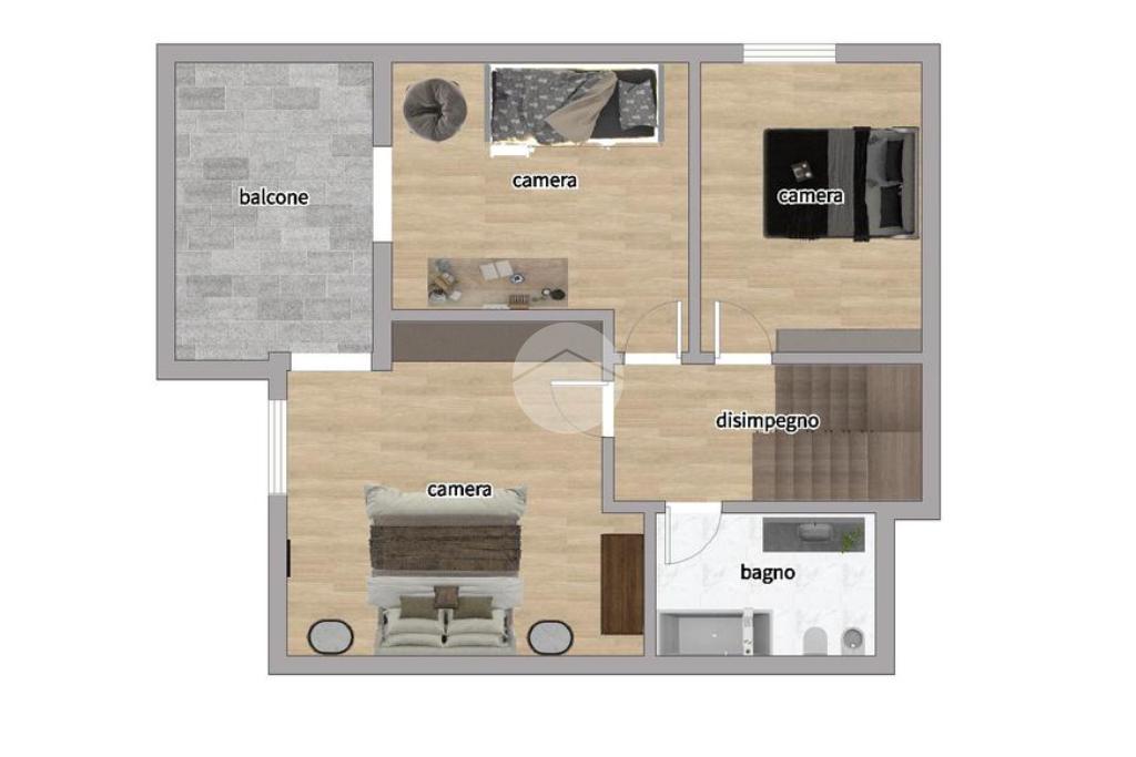 Internamente composta da: ingresso, salone, cucina separata abitabile, bagno e giardino privato di 50 mq . al piano terra. Al piano superiore troviamo 3 camere da letto 1 bagno e balcone.